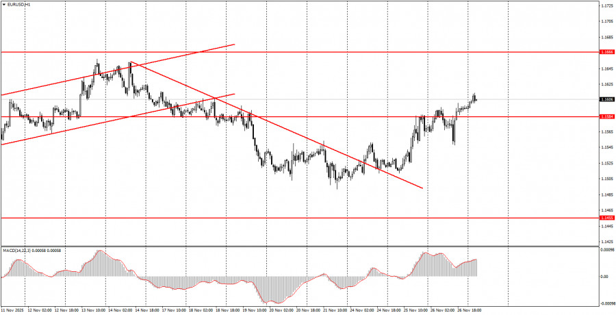 ঘন্টাভিত্তিক টাইমফ্রেমে, নতুন করে EUR/USD পেয়ারের মূল্যের ঊর্ধ্বমুখী মুভমেন্ট শুরু হয়েছে। সামগ্রিক মৌলিক এবং সামষ্টিক প্রেক্ষাপট এখনো মার্কিন ডলারের জন্য অত্যন্ত নেতিবাচক রয়েছে, যার মানে কেবলমাত্র টেকনিক্যাল কারণেই ইউরোর দরপতন হতে পারে — দৈনিক টাইমফ্রেমে এখনো ফ্ল্যাট রেঞ্জের মধ্যে ট্রেডিং অব্যাহত রয়েছে। তবে, আমাদের প্রত্যাশা এই ফ্ল্যাট রেঞ্জভিত্তিক মুভমেন্ট শেষ হয়ে ২০২৫ সালে পরিলক্ষিত ঊর্ধ্বমুখী প্রবণতা পুনরায় শুরু হবে।