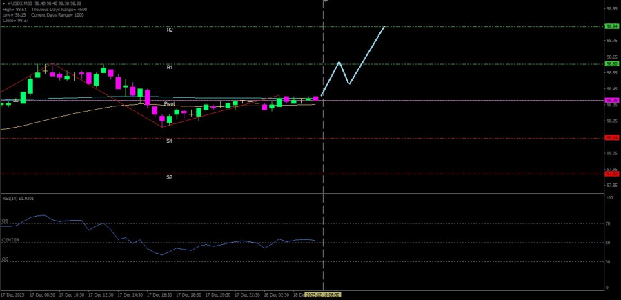 Zóna pozitivní reakce: Pokud cena #USDX překročí úroveň 98,38, existuje potenciál otestovat úroveň 98,60.