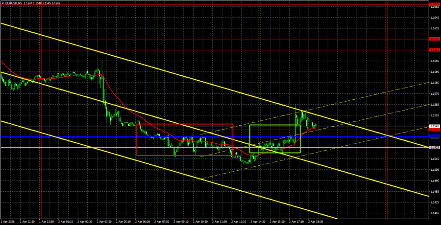 Yesterday, two trading signals formed on the 5-minute timeframe, which could even be disregarded given the nature of recent movements. We believed until the end that the market would stop reacting to Trump's contradictory statements, but it seems we were wrong. The market now only reacts to genuinely significant events and reports.