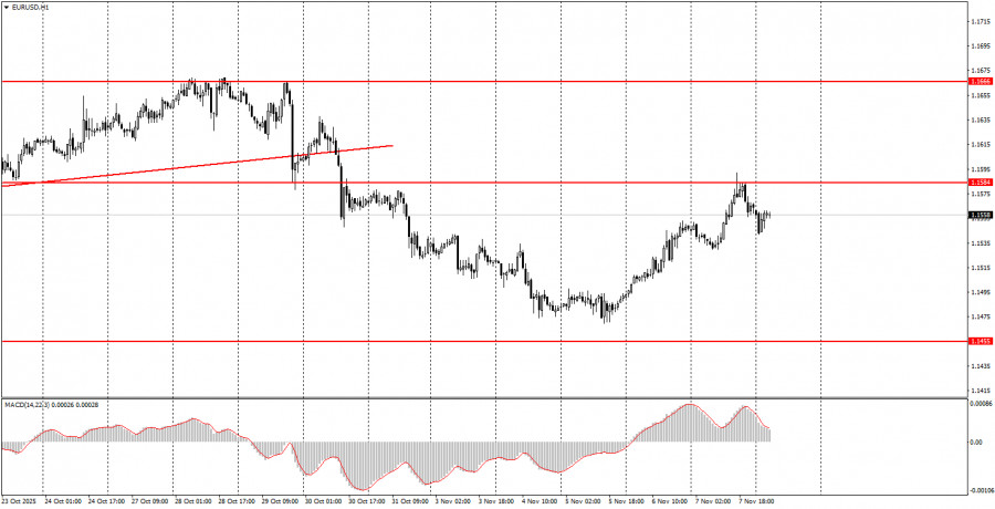 Pada hari Jumaat, pasangan mata wang EUR/USD meneruskan pergerakan menaiknya. Pemikiran pertama yang terlintas di fikiran ialah bahawa dolar telah kehabisan momentum. Sepanjang bulan setengah yang lalu, mata wang AS tidak mempunyai sebab kukuh untuk terus meningkat secara berterusan. Kita tidak boleh mengatakan bahawa dolar telah meningkat secara berlebihan, dan carta masa harian menunjukkan ini bukanlah keadaannya. Namun, ia telah meningkat pada masa apabila penurunannya tidak akan menimbulkan sebarang persoalan. Pasaran telah mengabaikan segala-galanya sepanjang bulan setengah yang lalu: pendirian pelonggaran Rizab Persekutuan, penutupan kerajaan AS (yang bermula pada 1 Oktober dan masih berlanjutan), tarif dan duti baharu Donald Trump, serta kekurangan statistik pasaran buruh dan pengangguran utama. Kini, pasaran mungkin mula menangani semua faktor ini secara tertunda. Aliran menaik untuk 2025 kekal relevan, dan harga pada carta masa harian telah turun ke kawasan berhampiran sempadan bawah julat pada 1.1400-1.1830. Oleh itu, pergerakan yang kita lihat baru-baru ini adalah kebanyakannya teknikal. Tiada garis aliran pada carta masa sejam, jadi pengesahan jelas mengenai akhir aliran menurun sedang tiada buat masa ini.
