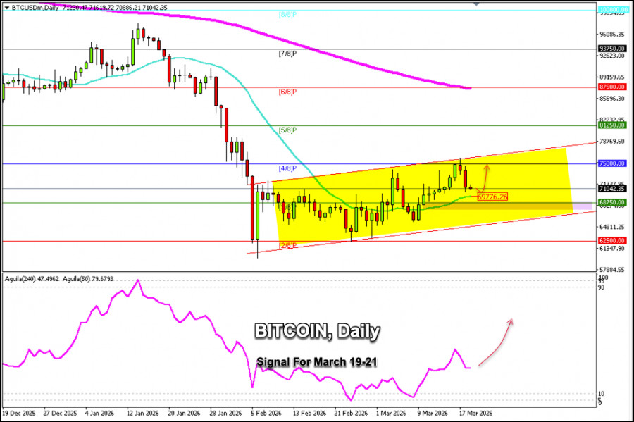 روزانہ چارٹ کے مطابق، بٹ کوائن 5 فروری سے تشکیل پانے والے ایک اپ ٹرینڈ چینل کے اندر ہے، جب یہ $60,000 کی نفسیاتی سطح پر پہنچ گیا تھا۔ آنے والے دنوں میں یہ $75,000 سے نیچے اور $67,000 سے اوپر مستحکم ہونے کا امکان ہے۔