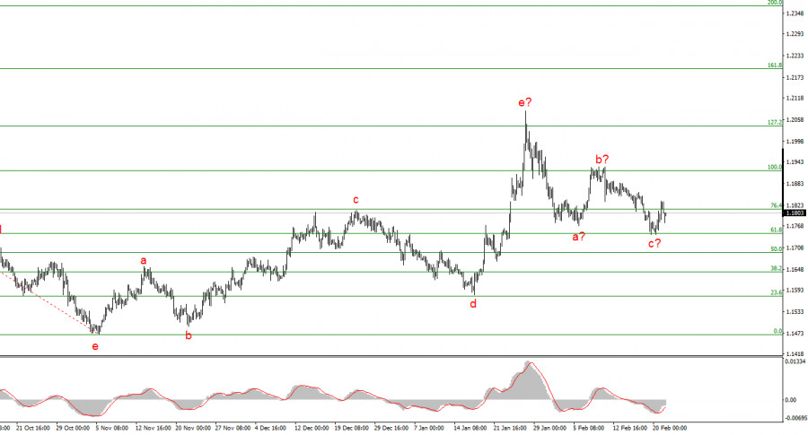 Новостной фон в течение понедельника фактически отсутствовал, если не принимать во внимание индекс делового климата в Германии. Следовательно, причин в течение дня повышать спрос на доллар у рынка не было ни одной. Напомню, что новые пошлины Трампа, которые были объявлены через 3 часа после вынесения вердикта Верховного суда США об отмене всех глобальных прошлогодних пошлин – это, по сути, пощечина американской правовой системе. Трамп из раза в раз демонстрирует, что законы писаны не для него, а юридическая система из раза в раз доказывает, что выносить вердикты она способна только против рядовых американцев, а у президента – полный иммунитет.