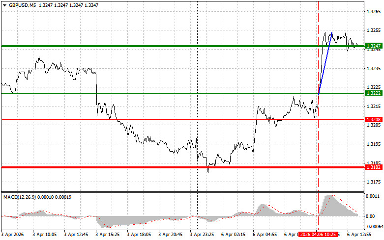 Kịch bản số 1: Tôi dự định bán đồng bảng sau khi giá phá vỡ xuống dưới mức 1,3242 (đường màu đỏ trên biểu đồ), điều này có thể dẫn đến một nhịp giảm nhanh. Mục tiêu chính của phe bán sẽ là 1,3217, tại đó tôi dự định chốt các vị thế bán và mở vị thế mua theo chiều ngược lại (kỳ vọng nhịp hồi 20–25 điểm). Áp lực lên đồng bảng có thể quay trở lại bất cứ lúc nào.