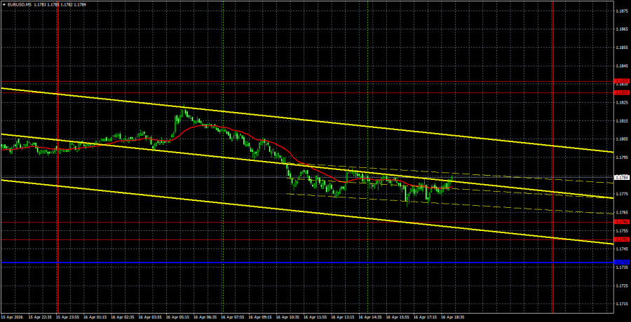 Trên khung thời gian 5 phút, không có tín hiệu giao dịch nào được hình thành trong ngày hôm qua. Tín hiệu mua gần nhất xuất hiện vào thứ Ba từ pha bật tăng trở lại trong vùng 1,1750–1,1760, và trong suốt ngày thứ Năm, giá dao động trong phạm vi 5 pip quanh vùng mục tiêu.