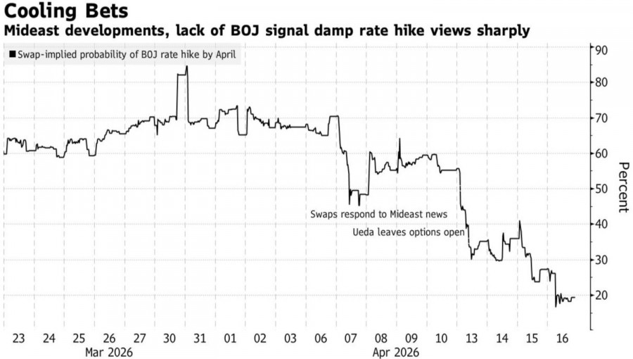 Sau bài phát biểu mang tính “diều hâu” này của Kazuo Ueda, thị trường hợp đồng tương lai đã giảm xác suất thắt chặt chính sách tiền tệ vào tháng Tư từ 55% xuống còn 19%, qua đó gây áp lực lên đồng yên.
