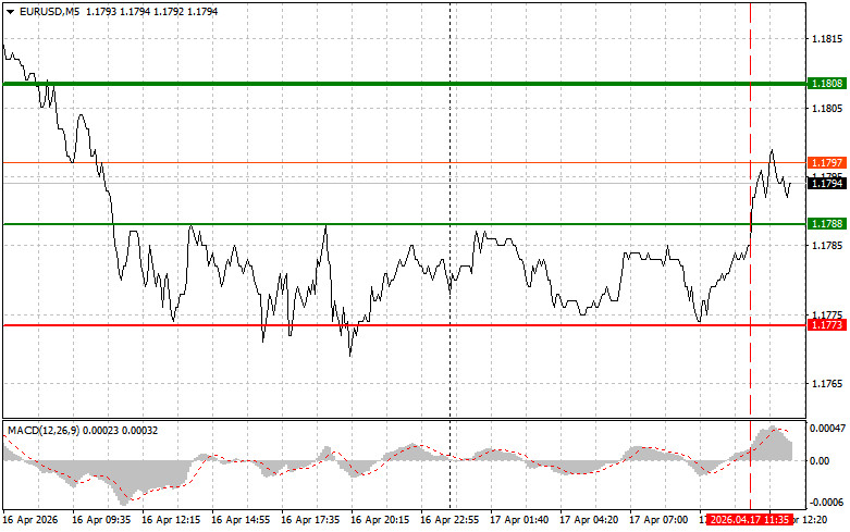 Việc kiểm định mức giá 1.1788 diễn ra vào thời điểm chỉ báo MACD đã di chuyển khá xa lên trên đường zero, điều này đã hạn chế tiềm năng tăng giá của cặp tiền. Vì lý do đó, tôi đã không mua đồng euro.