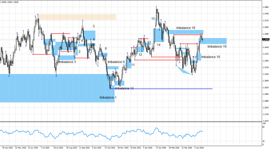 Với bối cảnh hiện tại, bất chấp bất ổn địa chính trị, đà đi lên nhiều khả năng sẽ tiếp diễn. Đồng euro cũng có khả năng tiếp tục tăng. Mục tiêu cho đồng bảng là vùng đỉnh năm 2026. Phản ứng với vùng mất cân bằng số 16 có thể kích hoạt một nhịp điều chỉnh giảm, trong khi các phản ứng với vùng mất cân bằng số 18 và số 19 có thể mang lại các tín hiệu mua mới cho nhà giao dịch.