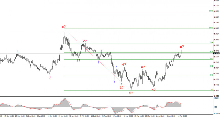 Cặp EUR/USD đã tăng 35 điểm vào ngày thứ Sáu. Không có tin tức quan trọng nào trong ngày, và chỉ đến buổi tối, Bộ Ngoại giao Iran mới thông báo tái mở cửa eo biển Hormuz. Chủ đề này sẽ được bàn luận kỹ hơn trong các phân tích riêng, còn lúc này chúng ta có thể đánh giá phản ứng của thị trường. Điều đáng ngạc nhiên là phản ứng lại khá yếu. Giá dầu ban đầu giảm mạnh, nhu cầu đối với đồng USD trú ẩn an toàn cũng vậy. Tuy nhiên, đồng USD chỉ giảm khoảng 50 điểm và hồi phục trở lại trong vài giờ. Trong khi đó, cấu trúc sóng hiện tại vẫn cho thấy khả năng hình thành ít nhất thêm một sóng giảm nữa.