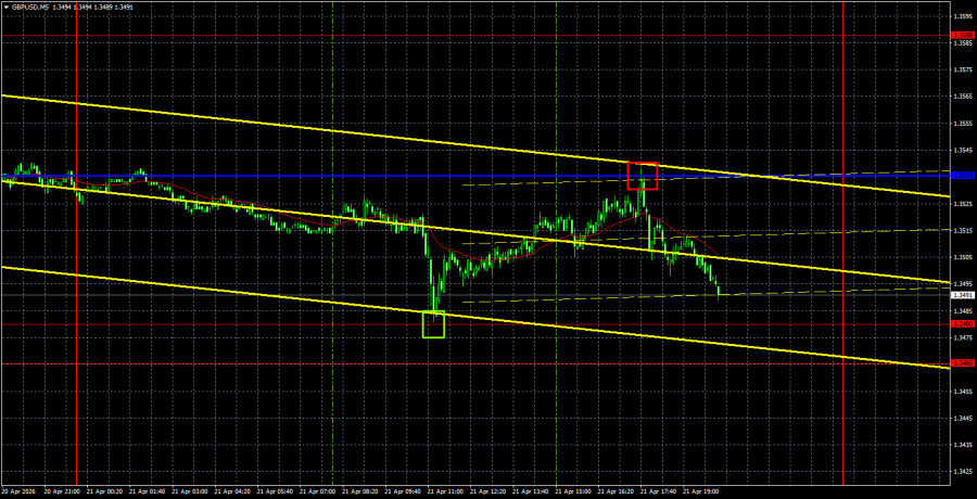 Cặp tiền tệ GBP/USD đã cố gắng điều chỉnh giảm vào thứ Ba nhưng sau đó tiếp tục được giao dịch trong vùng biên độ từ 1.3480 đến 1.3588 trong vài ngày qua. Nếu giá bật lên từ khu vực 1.3465–1.3480, nhiều khả năng biên độ này sẽ còn được duy trì thêm một thời gian nữa. Hôm qua, tại Anh đã công bố một số báo cáo quan trọng, trong đó có tỷ lệ thất nghiệp. Thông thường, thị trường ít chú ý đến báo cáo này, nhưng lần này tỷ lệ thất nghiệp đã giảm 0,3%, lẽ ra phải hỗ trợ đồng bảng Anh. Đáng tiếc là thị trường tiếp tục bỏ qua phần lớn dữ liệu kinh tế vĩ mô. Cuối tuần trước, chúng tôi cho rằng việc ngừng bắn và hạ nhiệt căng thẳng ở Trung Đông đã được thị trường phản ánh vào giá, hàm ý rằng một đợt điều chỉnh nên bắt đầu. Cho đến lúc này, mọi diễn biến đều phù hợp với dự báo của chúng tôi. Hôm nay, dự kiến sẽ diễn ra các cuộc đàm phán giữa Tehran và Washington, có thể làm thay đổi mạnh mẽ thị trường và cục diện tại Trung Đông. Trong trường hợp đó, việc dự đoán biến động giá của cặp tiền là bất khả thi, và nhà giao dịch cần sẵn sàng cho mọi kịch bản.