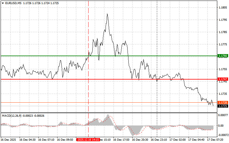 যখন MACD সূচকটি ইতোমধ্যেই শূন্যের বেশ উপরে উঠে যায় তখন এই পেয়ারের মূল্য 1.1766 লেভেলে পৌঁছায়, যার ফলে এই পেয়ারের মূল্যের ঊর্ধ্বমুখী হওয়ার সম্ভাবনা সীমিত হয়ে পড়ে। এই কারণেই আমি ইউরো ক্রয়ের সিদ্ধান্ত নিইনি।