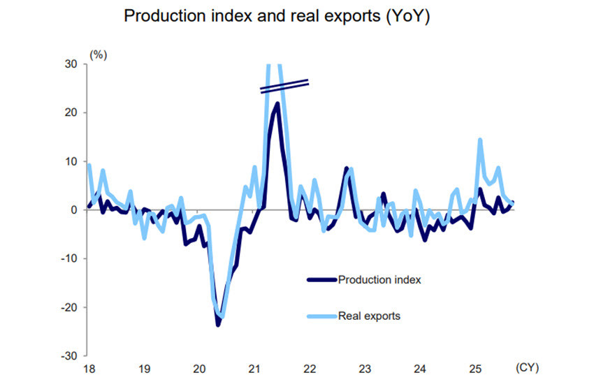 Agora, as expectativas em relação à taxa de juros se deslocam para dezembro, restando tempo para alinhar as posições do BoJ e do governo. A economia demonstra resiliência: a produção industrial manteve-se em níveis elevados em setembro, apesar das tarifas mais altas impostas pelos Estados Unidos, enquanto a inflação voltou a acelerar e exige uma resposta política.
